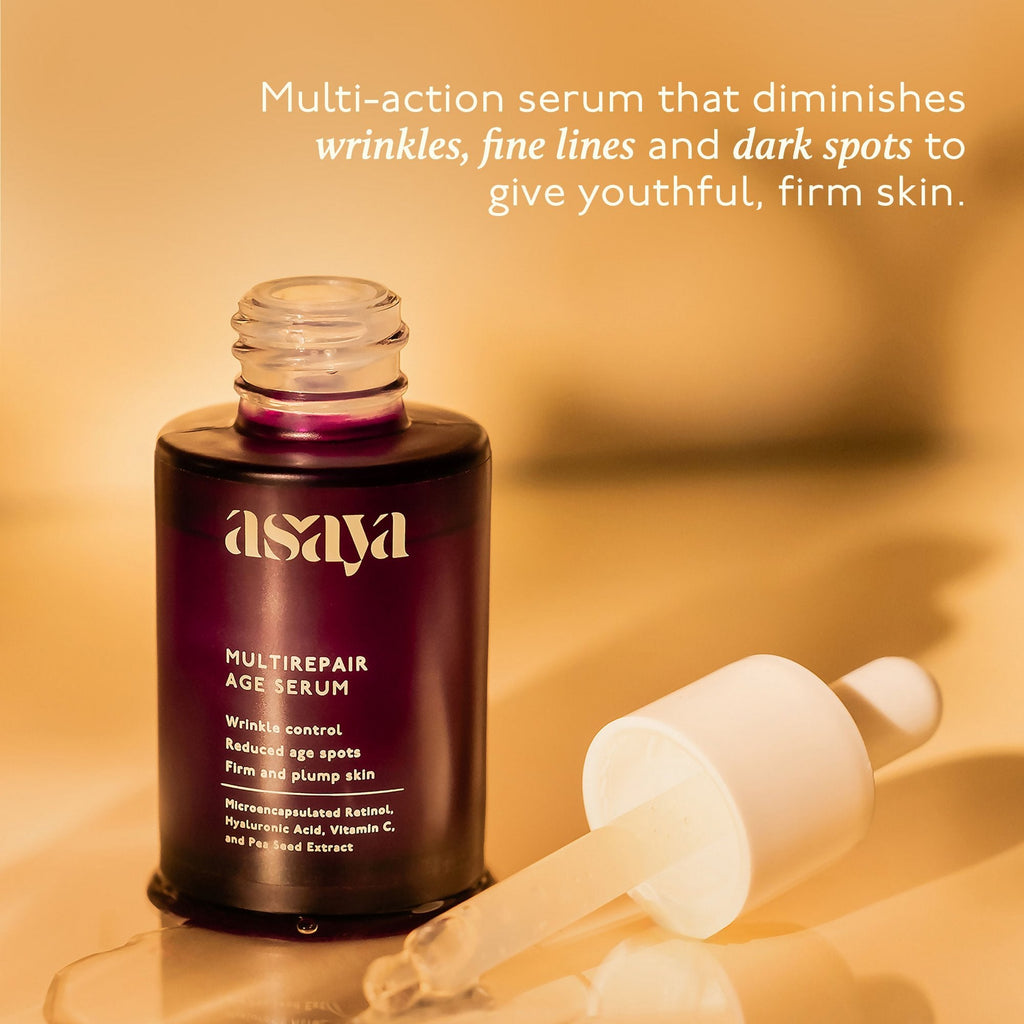 Asaya 0.2% Retinol Peptide Night Serum, Beginner Friendly Anti Aging Face Serum With Vit C